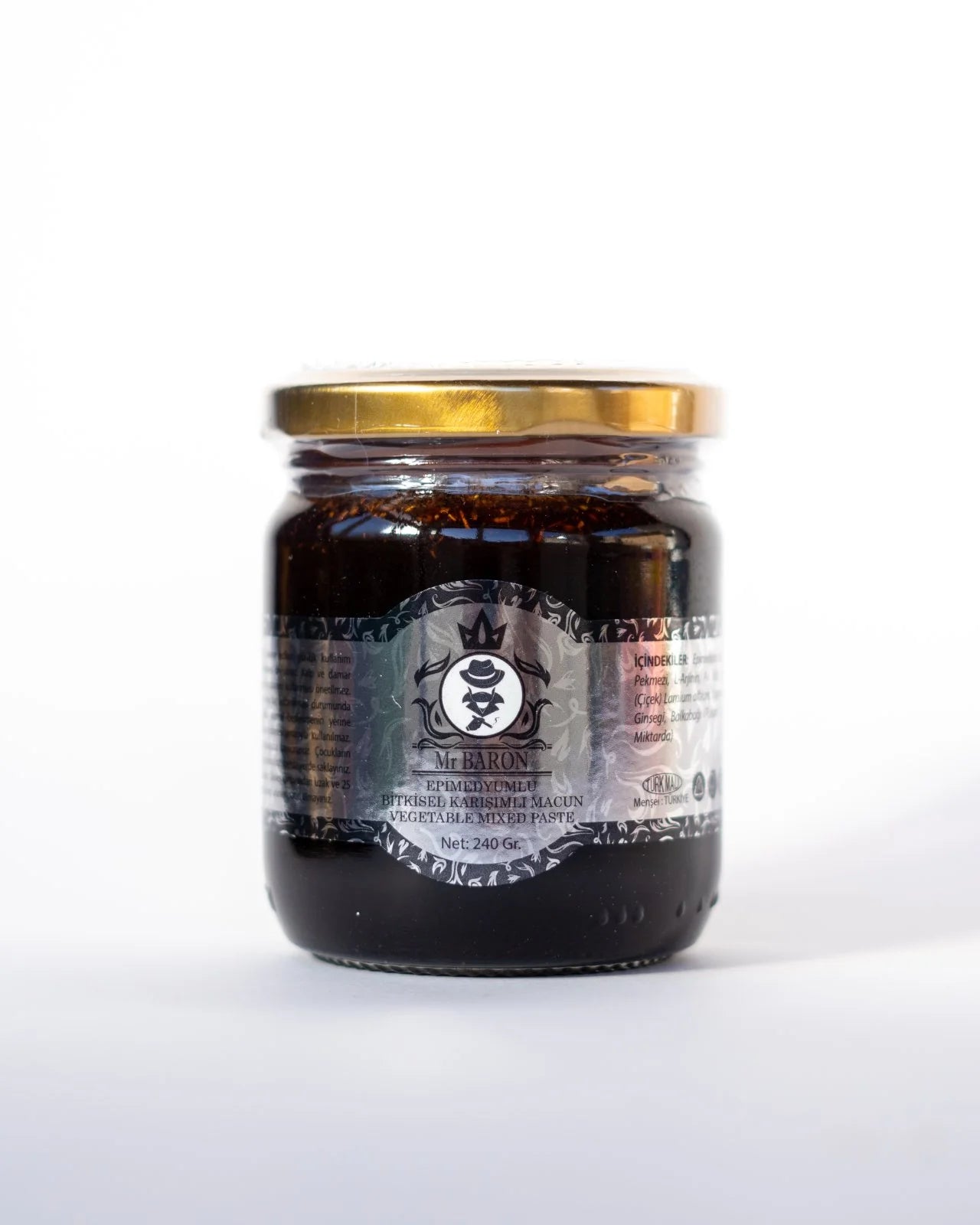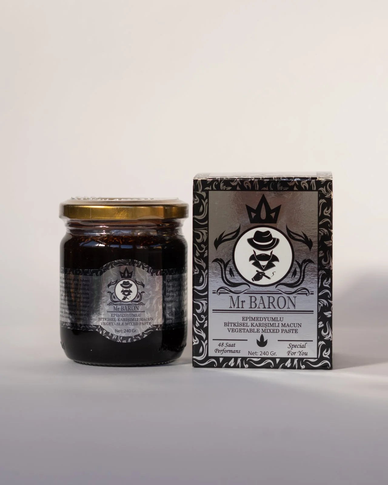 Mr BARON е билков маджун с епимедиум, женшен, джинджифил, мака корен, пчелно млечице, мед, канела и балсамова смола. Произведен в Турция по традиционна рецепта.