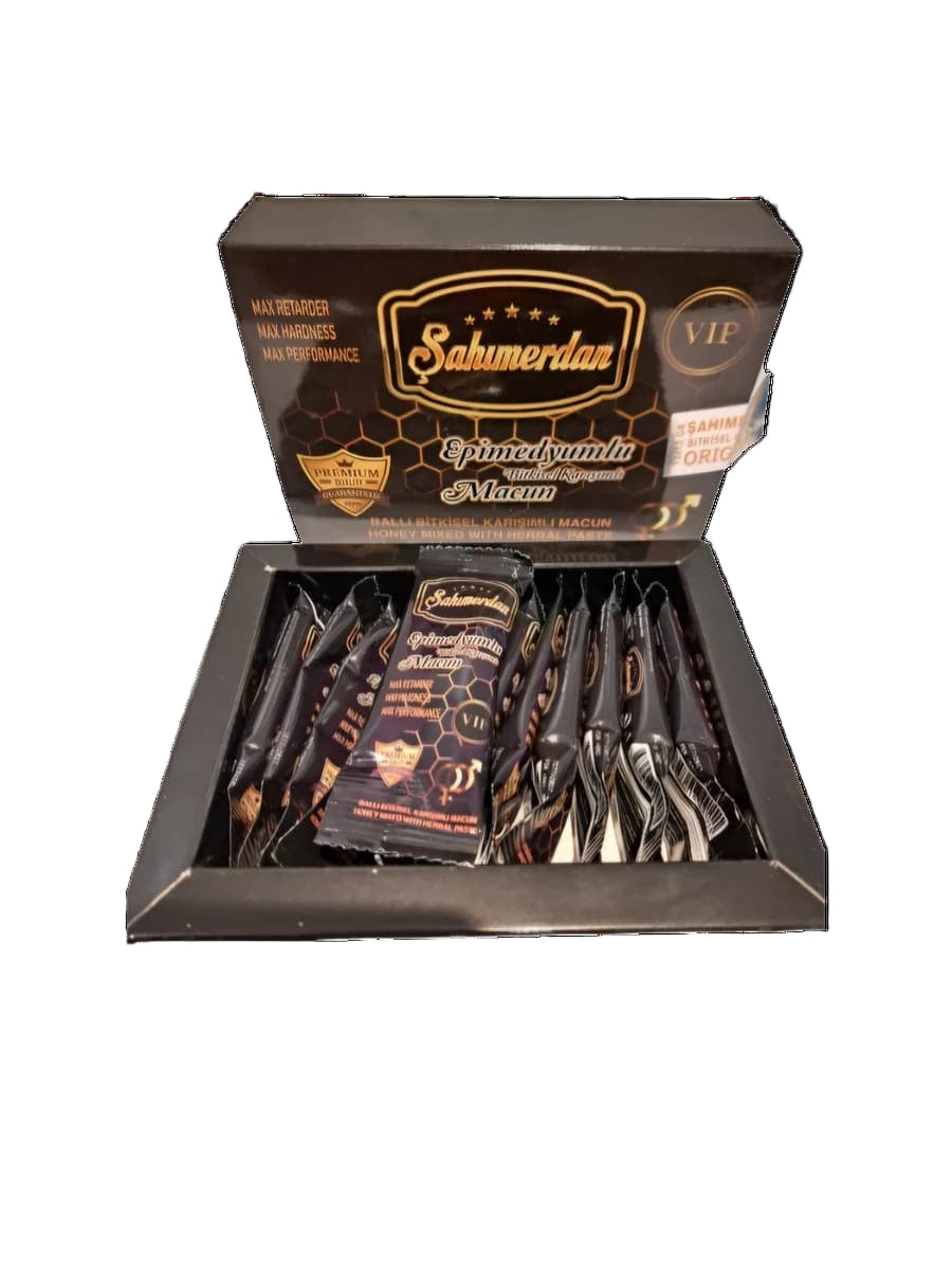 🌿 Sahimerdan VIP Epimedium Macun е един от най-популярните турски билкови еликсири, създаден по традиционна рецепта. Всяко саше съдържа внимателно подбрана смес от епимедиум, пчелен мед, женшен, трибулус, пчелно млечице и други натурални съставки, които подпомагат енергията, тонуса и вътрешната хармония.